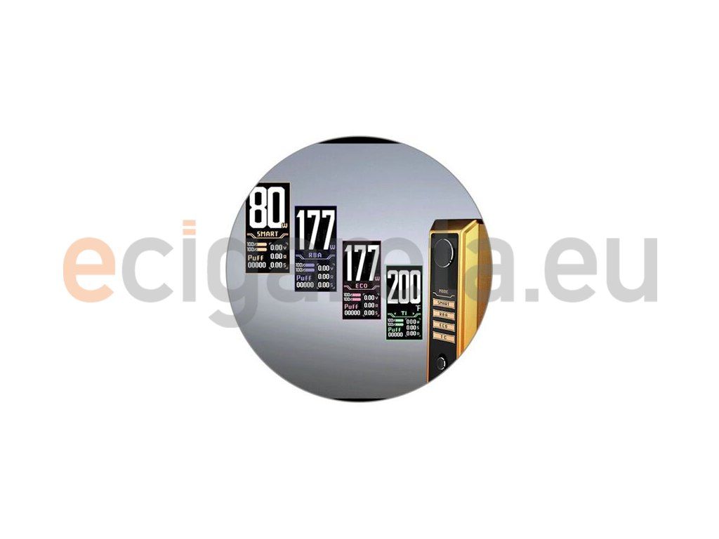Mod Drag 5 umožňuje výběr hned ze čtyř výstupních režimů, které dokáží uspokojit požadavky pokročilých uživatelů i naprostých začátečníků. Mod je vybaven režimem Smart, který automaticky doporučí vhodný výkon na základě odporu připojeného atomizéru, režimem RBA pro vlastní uživatelské nastavení výstupního výkonu, režimem ECO pro větší úsporu baterií během používání a režimem TC pro pokročilé uživatele, kteří používají mod v teplotních režimech pro specifické materiály spirálek.
