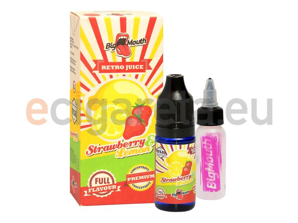 Čerstvě utržené jahody s citrónovou dochutí... Příchutě Big Mouth jsou jedny z nejlepších příchutí pro tvorbu vlastních liquidů. Součástí designového balení je 10ml lahvička s příchutí a 30ml lahvička pro namíchání liquidu. Výroba probíhá za nejpřísnějších hygienických standardů ve farmaceutické laboratoři. Jedná se o koncentrát, který se kape do báze. Příchuť může být použita pouze jako aroma do bází....nejedná se o hotový liquid.