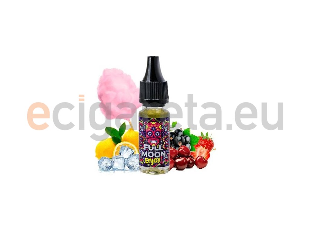 Užijte si dokonalou směs chutí s novou příchutí Enjoy od výrobce Full Moon. Tato příchuť ukrývá neodolatelnou kombinaci svěžího citronu, jemně nakyslého černého rybízu, sladkých jahod a šťavnatých třešní. Všechny tyto ovocné plody jsou potom zahaleny sladkým kabátem v podobě cukrové vaty. Jemná a sladká chuť ovocné cukrové vaty vás zaujme už při pouhém otevření lahvičky.
