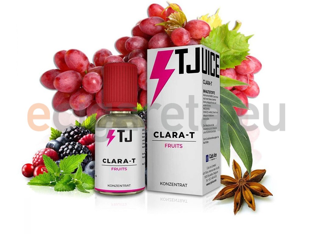Clara-T je nádherně svěží chuť, která kombinuje sytě červené bobule v podobě borůvek, rybízu a zralých malin, se šťavnatými tóny hroznů. Výdech doplňuje lehký mentol, díky němuž si tuto jasnou příchuť můžete vychutnávat po celý den.