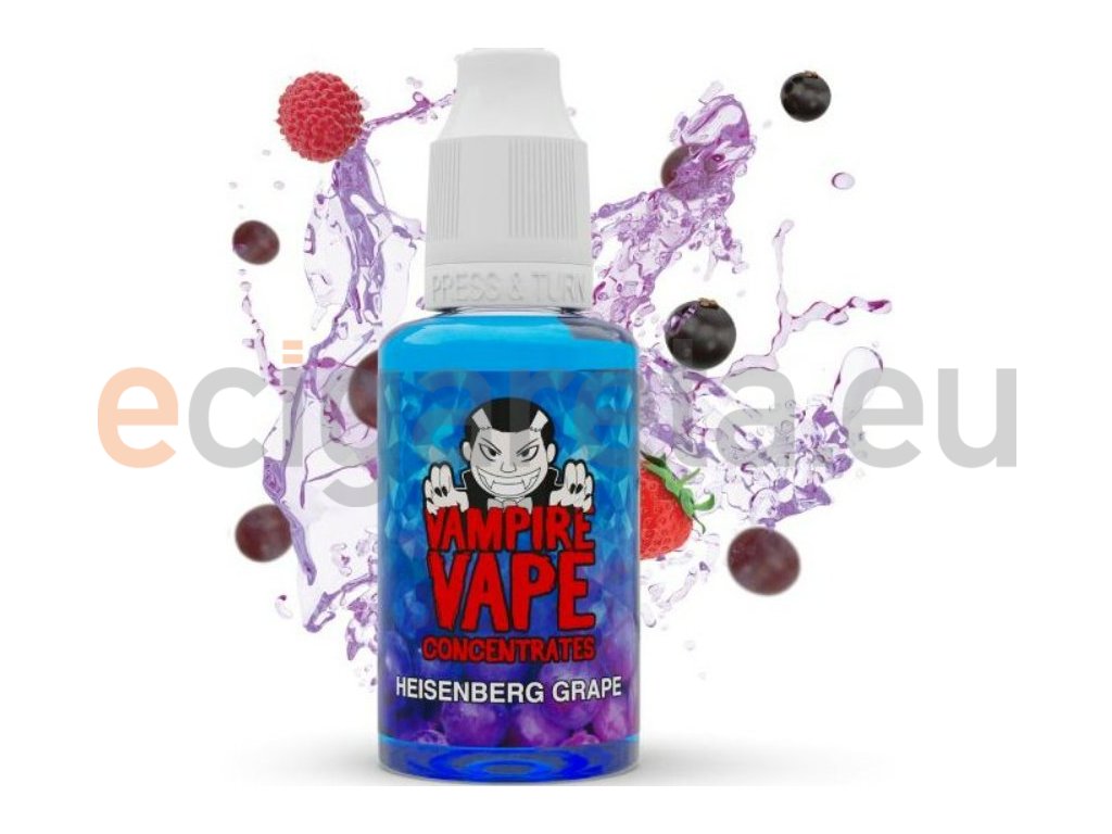 Pokud máte rádi mysteriózní mix Heisenberg, určitě vás bude bavit varianta Grape, která samotnou příchuť vyhání do vesmíru a přínáší ještě intenzivnější zážitek!... Britský výrobce Vampire Vape přináší nejoblíbenější příchutě pro výrobu vlastních liquidů. Výroba probíhá za nejpřísnějších hygienických standardů ve farmaceutické laboratoři. Jedná se o koncentrát, který se kape do báze. Příchuť může být použita pouze jako aroma do bází....nejedná se o hotový liquid.