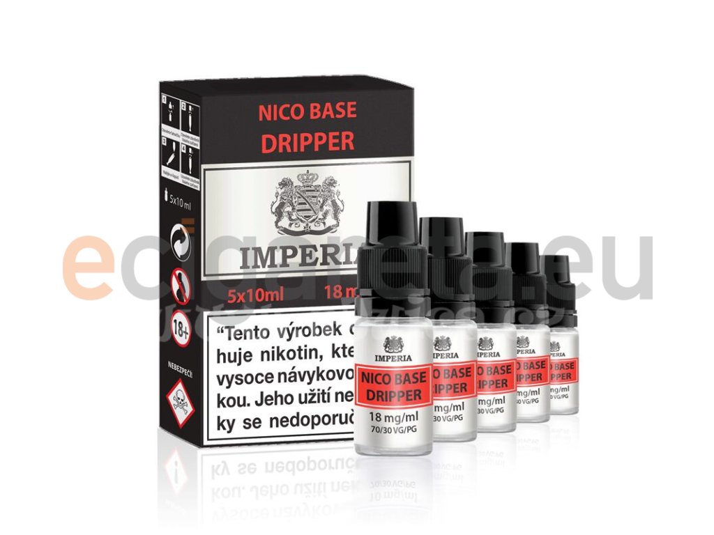 Báze pro míchání vlastních e-liquidů. Obsahují pouze rostlinný glycerol (VG), propylenglykol (PG) a nikotin. Jsou bez zápachu a příchutě. Nejsou přidávána žádná další aditiva (voda nebo alkohol).Imperia Dripper je báze s vysokým obsahem glycerolu (VG...více v detailním popisu.