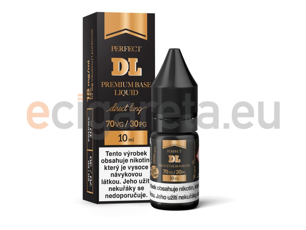 Booster báze JustVape DL s obsahem nikotinu 18mg/ml slouží jako doplněk pro beznikotinové báze k namíchání přesné požadované koncentrace. Poměr látek PG / VG je 30% / 70%, díky tomu je vhodná pro výkonné elektronické cigarety používané pro přímý potah do plic (DL).
