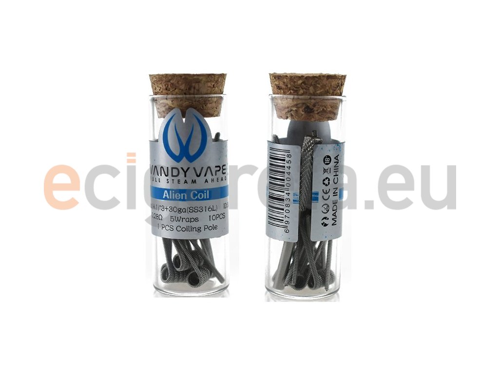 Předmotané Alien spirálky z nerez oceli o odporu 0.28ohm. 26ga(A1)*3+30ga(SS316L)... 10ks spirálek + 1ks nářadí