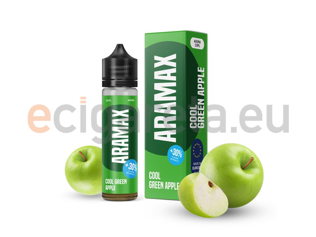Příchuť Aramax S&V: Cool Green Apple (Chladivé zelené jablko) objem 12ml tabáková nálepka Kolek Q