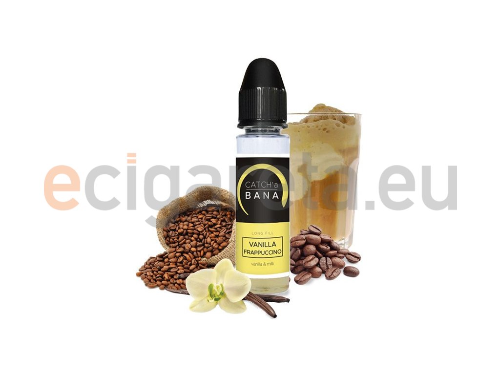 Vanilla Frappuccino představuje netradiční spojení lahodných kávových tónů s jemnou vanilkou.... Řada Catch´a Bana přichází s osvědčeným konceptem Shake and Vape. Balení obsahuje 10ml příchutě v 60ml Chubby lahvičce. Uživatel tak pouze přidá bázi do lahvičky, zatřese s ní a má hotový e-liquid. Struktura jednotlivých receptů je postavená tak, aby bylo možné použít namíchaný e-liquid bez potřeby zrání. Jedná se o koncentrát, který se kape do báze. Příchuť může být použita pouze jako aroma do bází....nejedná se o hotový liquid.