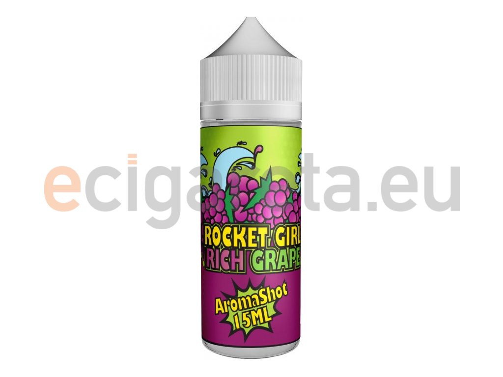Šťáva z výběrového hroznového vína.... Příchutě Rocket Girl jsou vyráběny ve spolupráci předních odborníků z Malajsie a Kanady. Jsou dodávány ve 120ml Chubby Gorilla Unicorn lahvičkách, které obsahují 15ml koncentrátu. Uživatel tak pouze přidá bázi do lahvičky, zatřese s ní a má hotový e-liquid.Výroba probíhá za nejpřísnějších hygienických standardů ve farmaceutické laboratoři. Jedná se o koncentrát, který se kape do báze. Příchuť může být použita pouze jako aroma do bází....nejedná se o hotový liquid.