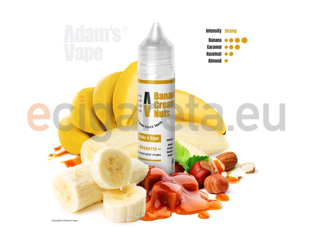 Příchuť Adams vape S&V: Banana Creamy Nuts (Banány s krémovým karamelem a ořechy) objem 10ml tabáková nálepka Kolek Q