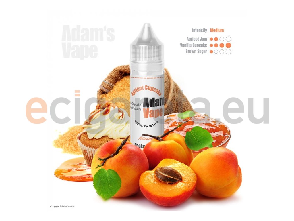 Cupcake s hnědým cukrem, meruňkovým džemem a šlehačkou... Vyladěné příchutě od českého výrobce Adam´s Vape. Příchutě jsou dodávány v 60ml plastových lahvičkách, které obsahují 12ml koncentrátu. Uživatel tak pouze přidá bázi do lahvičky, zatřese s ní a má hotový e-liquid.... Jedná se o koncentrát, který se kape do báze. Výroba probíhá za nejpřísnějších hygienických standardů ve farmaceutické laboratoři....nejedná se o hotový liquid.