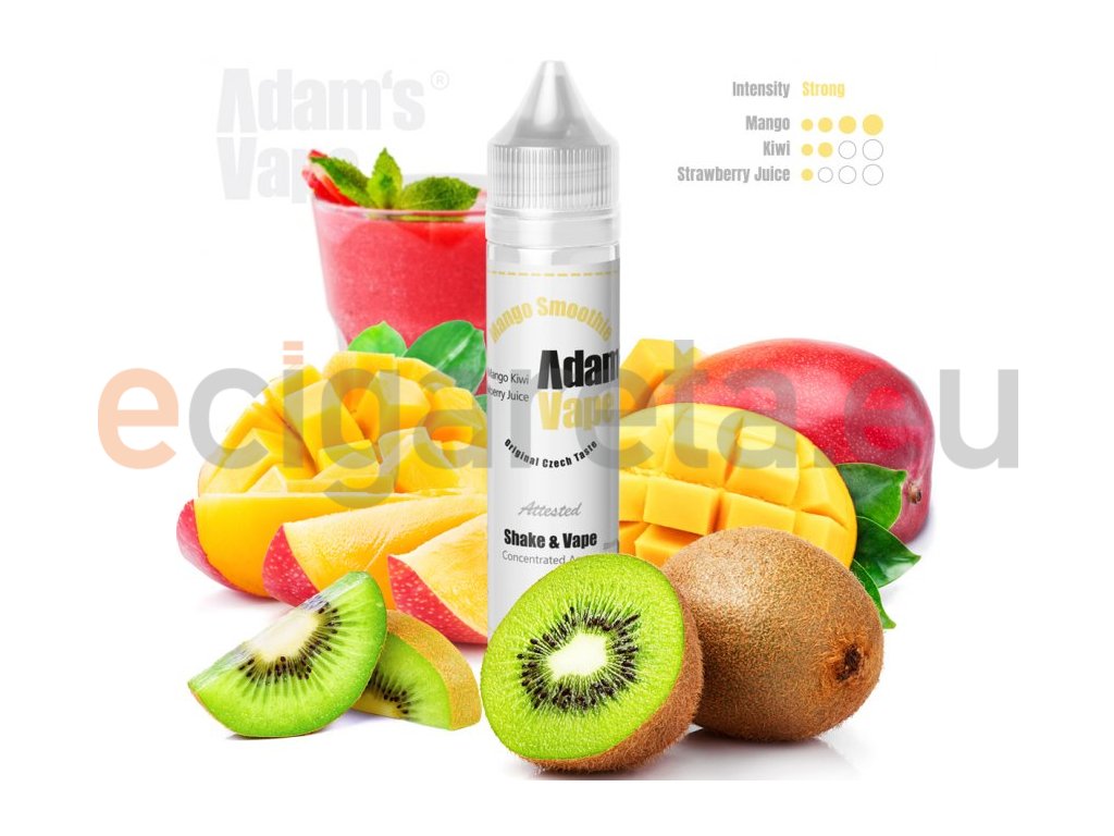 Vytříbená chuť zralého manga, sladkokyselého kiwi a nasládlé jahody... Vyladěné příchutě od českého výrobce Adam´s Vape. Příchutě jsou dodávány v 60ml plastových lahvičkách, které obsahují 12ml koncentrátu. Uživatel tak pouze přidá bázi do lahvičky, zatřese s ní a má hotový e-liquid.... Jedná se o koncentrát, který se kape do báze. Výroba probíhá za nejpřísnějších hygienických standardů ve farmaceutické laboratoři....nejedná se o hotový liquid.