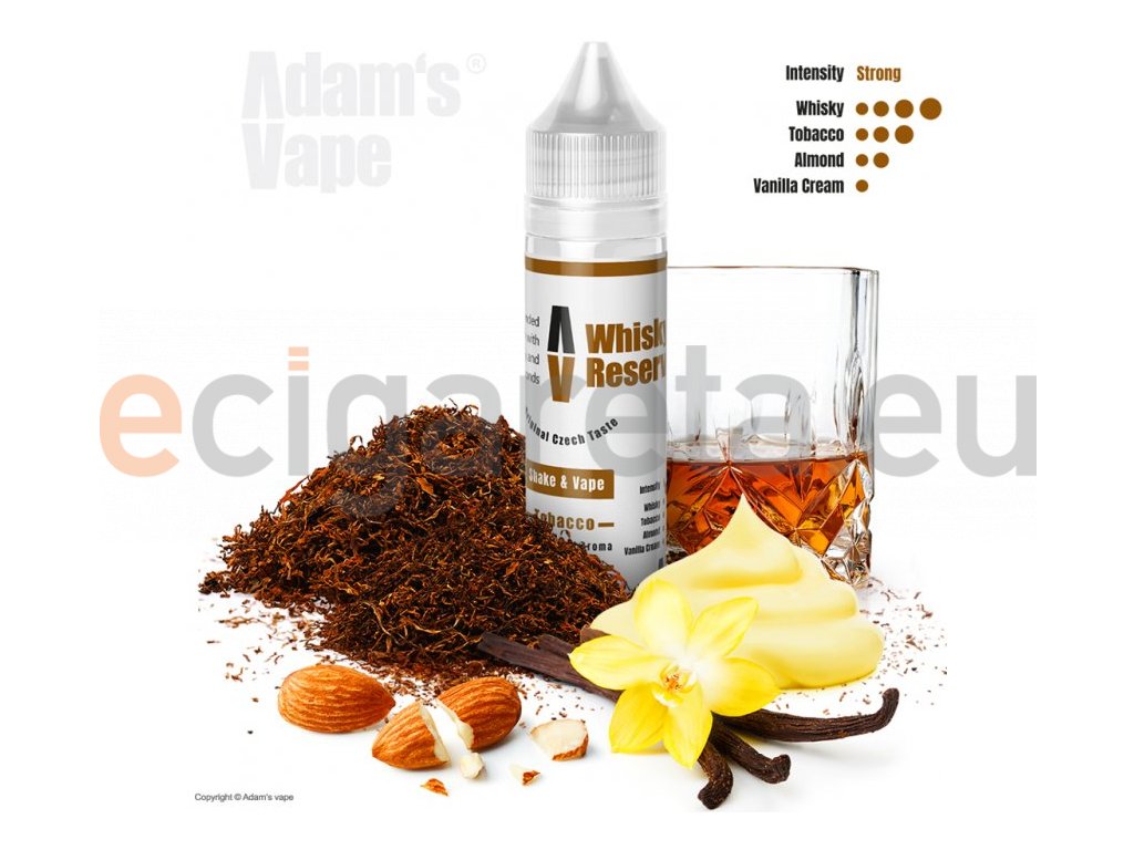 Ve vůni je zřetelný mix tabáků, který doplňuje lehká ostrost whisky. Při potažení vystoupí do popředí chuť mandlí, která s výraznou a vyváženou chutí whisky dokonale doplňuje sušší tabákové tóny. V závěru ucítíte jemnou sladkost vanilkového krému, který zakulacuje a zjemňuje celý chuťový profil.Vyladěné příchutě od českého výrobce Adam´s Vape. Příchutě jsou dodávány v 60ml plastových lahvičkách, které obsahují 12ml koncentrátu. Uživatel tak pouze přidá bázi do lahvičky, zatřese s ní a má hotový e-liquid.... Jedná se o koncentrát, který se kape do báze. Výroba probíhá za nejpřísnějších hygienických standardů ve farmaceutické laboratoři....nejedná se o hotový liquid.