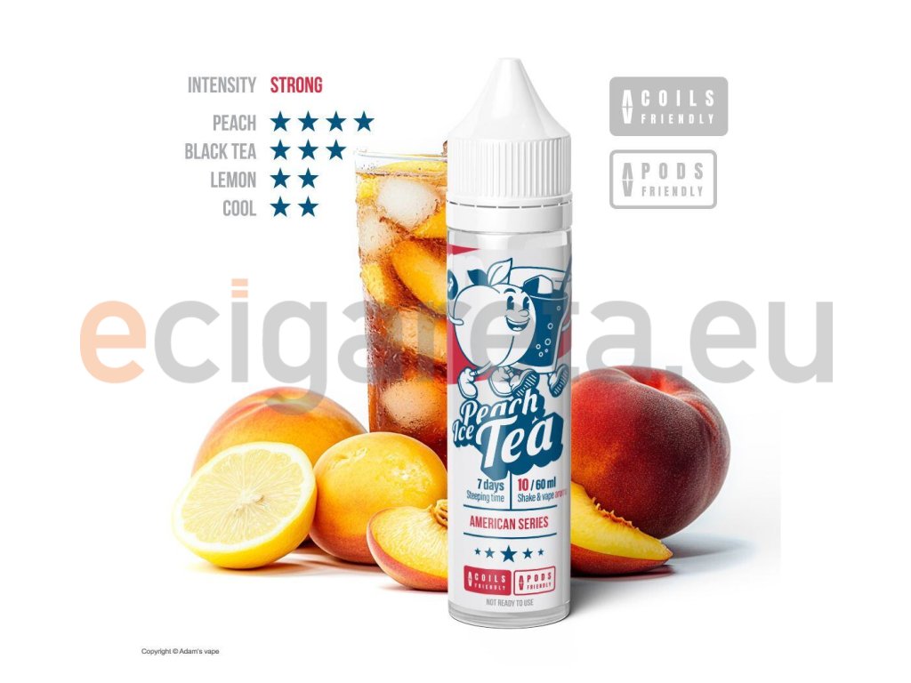 Příchuť Adams Vape American Series S&V: Peach Ice Tea objem 10ml tabáková nálepka Kolek Q