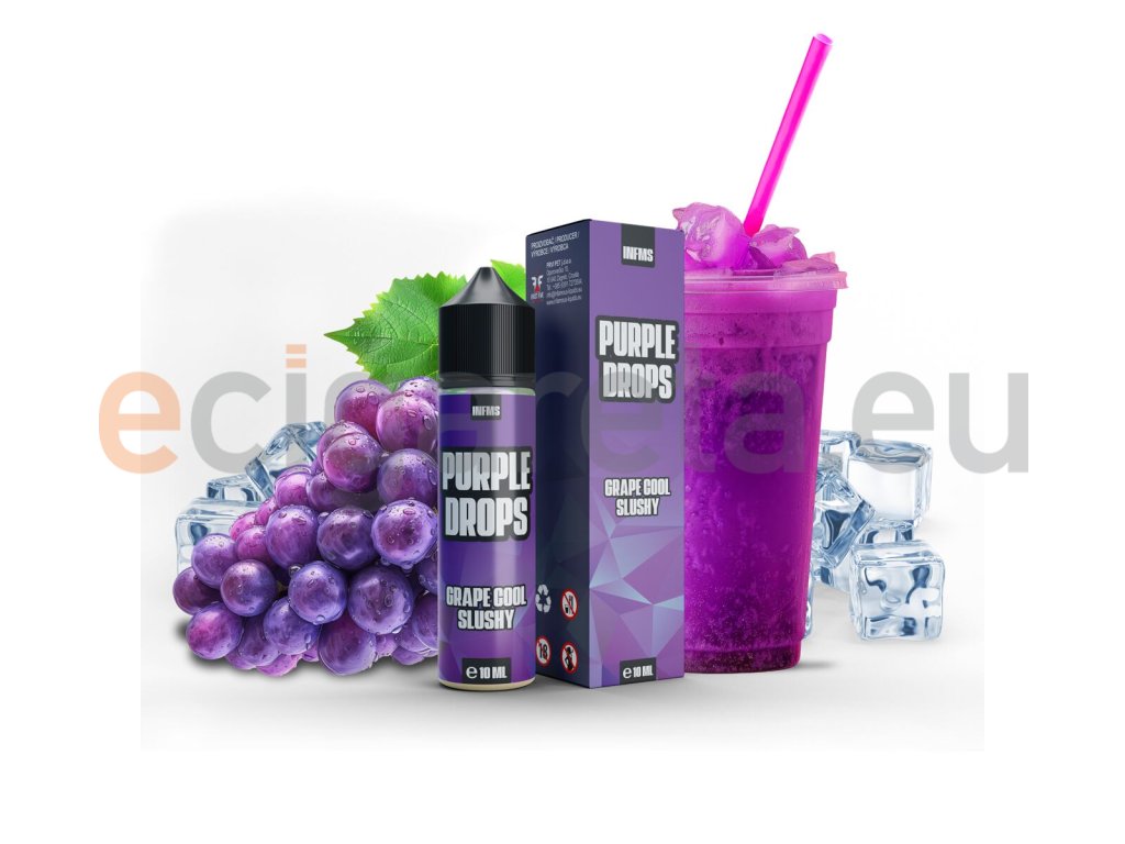 Také si rádi vychutnáte ovocnou ledovou tříšť v horkých letních dnech? Nyní si ji budete moci užít v průběhu celého roku. Příchuť Purple Drops přináší do vašich atomizérů jedinečnou chuť ledového hroznového vína z odrůdy Isabella, jež se vyznačuje mimořádnou jemností a příjemně sladkou chutí. Výsledný efekt je podtržen pořádnou porcí coolady pro správně chladivé osvěžení.