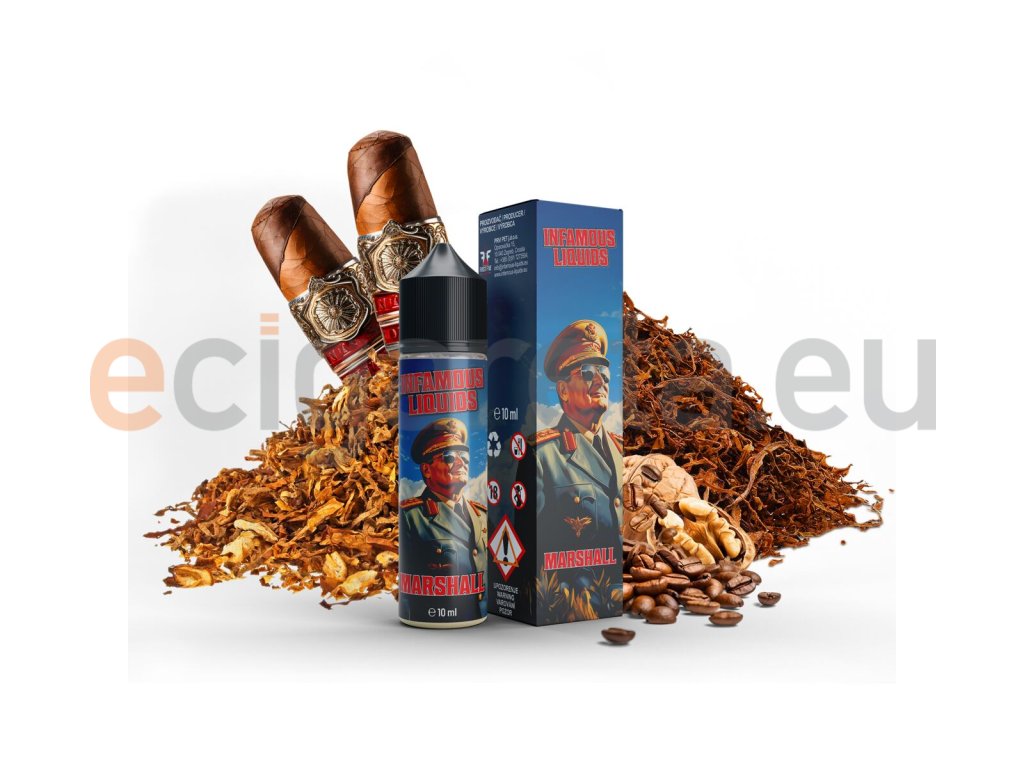 Příchuť Infamous Special S&V: Marshall (Doutníkový tabák s oříškem) objem 10ml tabáková nálepka Kolek R