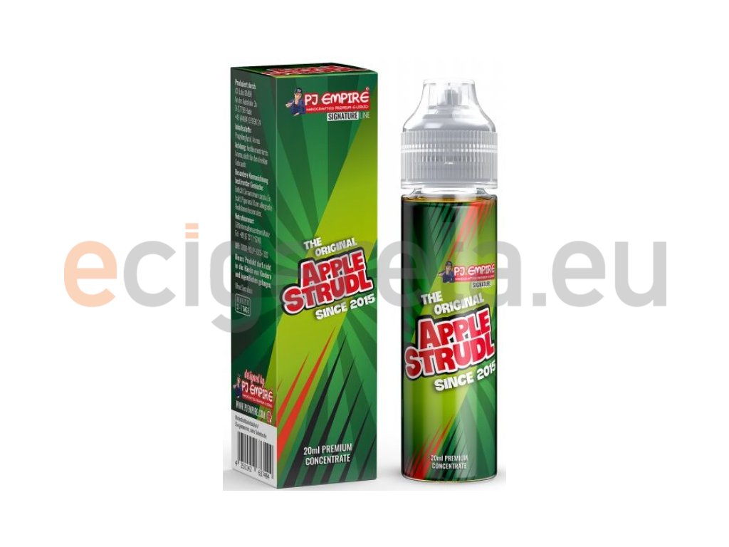 Vídeňský jablečný štrůdl... Příchutě jsou dodávany v 60ml Chubby Gorilla Unicorn lahvičkách, které obsahují 20ml koncentrátu. Uživatel tak pouze přidá bázi do lahvičky, zatřese s ní a má hotový e-liquid.... Prémiové příchutě PJ Empire jsou vyrobeny z nejkvalitnějších surovin ve farmaceutické laboratoři v Rakousku. Jedná se o koncentrát, který se kape do báze. Díky tomu, že se nejedná o příchutě pouze pro přípravu e-liquidu, ale také o dochucovadla jídel a nápojů, je při výrobě dbáno na nejvyšší stupeň kvality. Výroba probíhá za nejpřísnějších hygienických standardů ve farmaceutické laboratoři.....nejedná se o hotový liquid.
