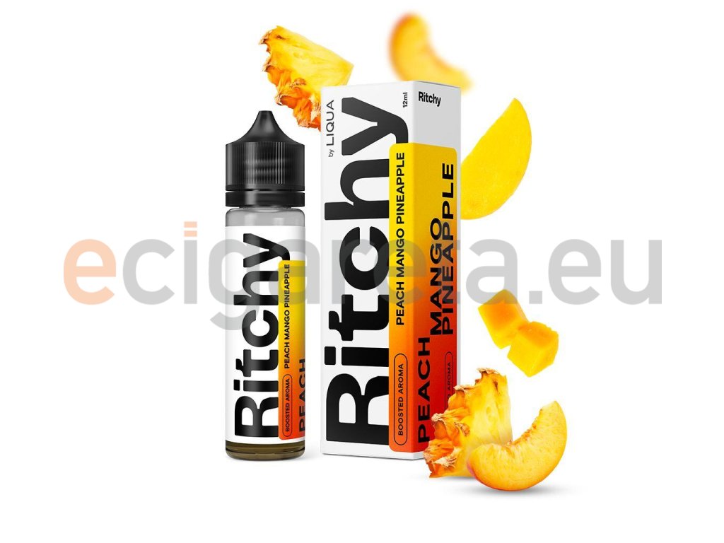 Příchutě Ritchy S&V od evropské společnosti Liqua nabídnou výraznější aroma a skutečně prémiový zážitek při každém potáhnutí. Vychutnejte si tyto jedinečné ovocné směsi a zamilujte se do jejich výrazné, bohaté, plné a nezaměnitelné chuti. Všechny příchutě Ritchy by Liqua jsou vyrobeny na území EU a splňují všechna kritéria pro uvedení na trh. Jsou vyrobeny jen z těch nejkvalitnějších surovin pro vynikající chuťové podání. Příchutě Ritchy jsou dodávány ve velké 60ml lahvičce, ve které se nachází 12ml příchutě. Díky systému shake & vape stačí pouze dolít bázi a začít potahovat bez potřeby zrání.