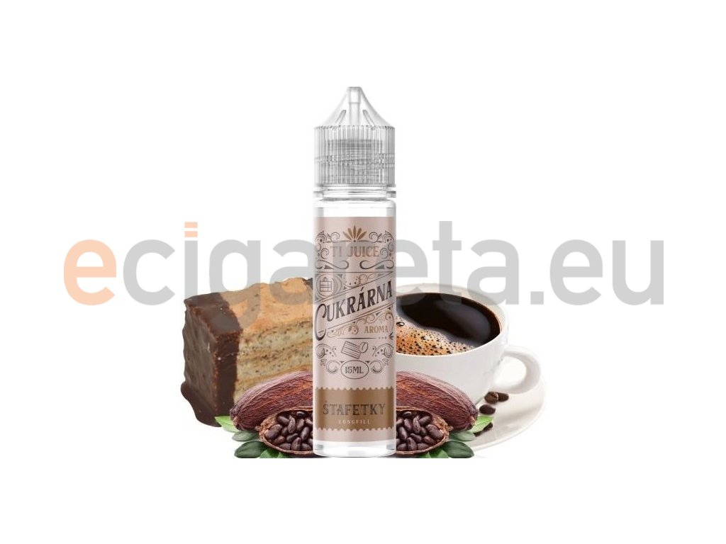 Nadýchané těsto naplněné krémem z kávy a zalité kvalitní čokoládou... TI Juice je tradiční výrobce komplexních příchutí. Novinky z řady Cukrárna nabídnou úžasné a propracované dezertní příchutě. Jsou dodávány v 60ml lahvičkách, které obsahují 15ml koncentrátu.