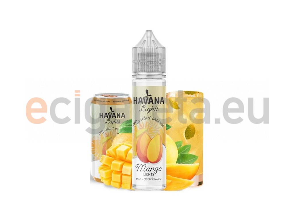 Intenzivní a šťavnatá chuť tropického manga... České příchutě Havana Lights jsou dodávány v 60ml plastových lahvičkách, které obsahují 15ml koncentrátu. Uživatel tak pouze přidá bázi do lahvičky, zatřese s ní a má hotový e-liquid.... Jedná se o koncentrát, který se kape do báze. Výroba probíhá za nejpřísnějších hygienických standardů ve farmaceutické laboratoři....nejedná se o hotový liquid.