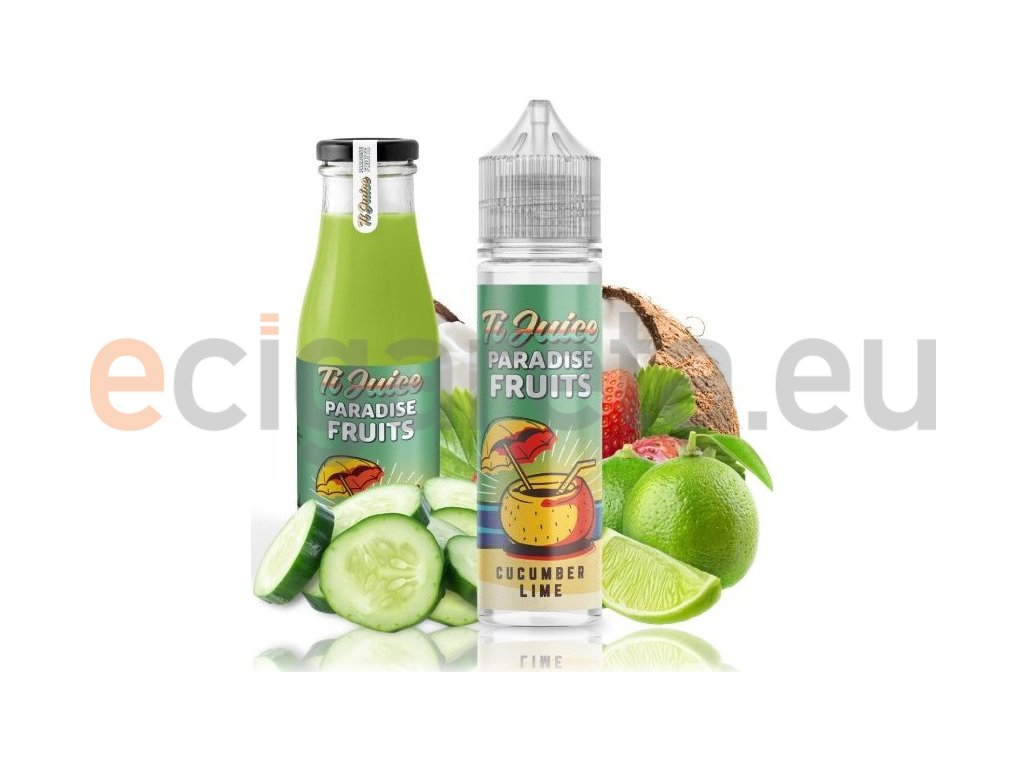 Neotřelá kombinace čerstvé okurky, sladkokyselé limetky, čerstvých jahod a špetky kokosu... Paradise Fruits je další projekt oblíbeného dua TI Juice. Nabídne perfektní exotické i běžnější ovocné chutě a kombinace. Jsou dodávány v 60ml lahvičkách, které obsahují 12ml koncentrátu.